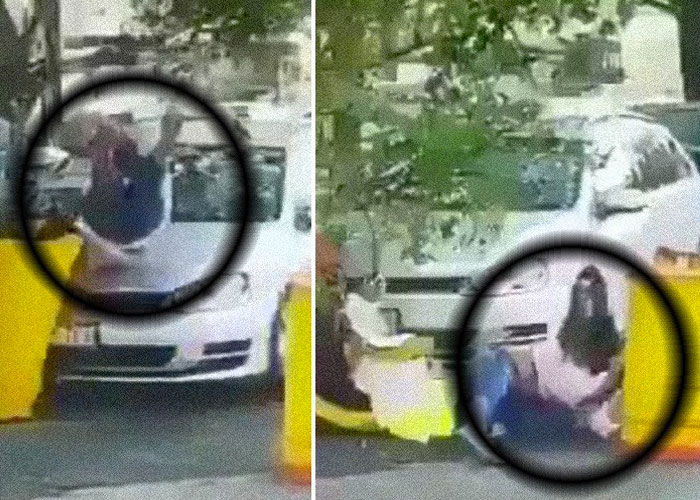 En las imágenes se ve a Vanesa Gaytán platicar en la entrada de Casa Jalisco con uno de los vigilantes, cuando fueron embestidos por un automóvil blanco que se acercó a gran velocidad, para después impactarse contra las macetas alojadas en la calle Montreal.