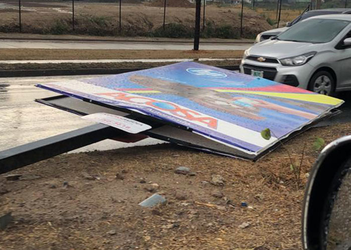 La intensa lluvia que cayó desde las 3:30 de la tarde venía acompañada de granizos, actividad eléctrica y vientos racheados que dejaron varios postes y árboles caídos en diferentes sectores de la capital.