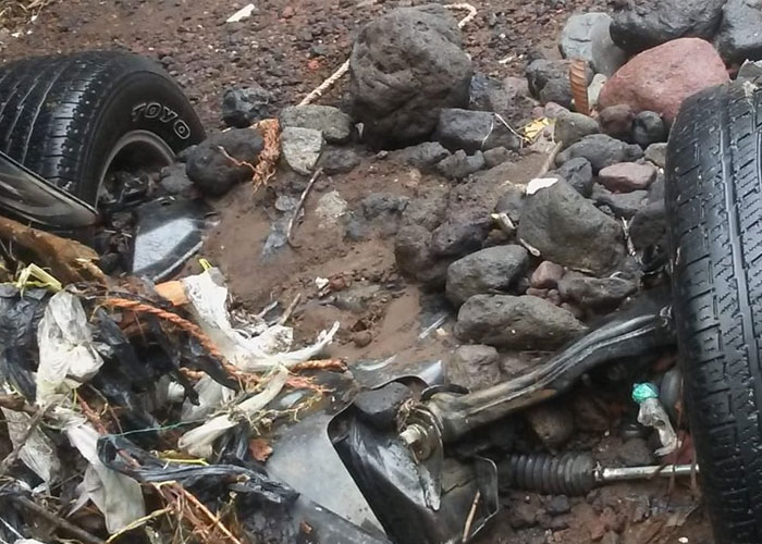 “Íbamos preparados para rescate y búsqueda, pero dijeron que era negativo, que solo el motorista iba, el vehículo quedó totalmente soterrado, de hecho solo las cuatro ruedas se le ven”, indicó un socorrista.