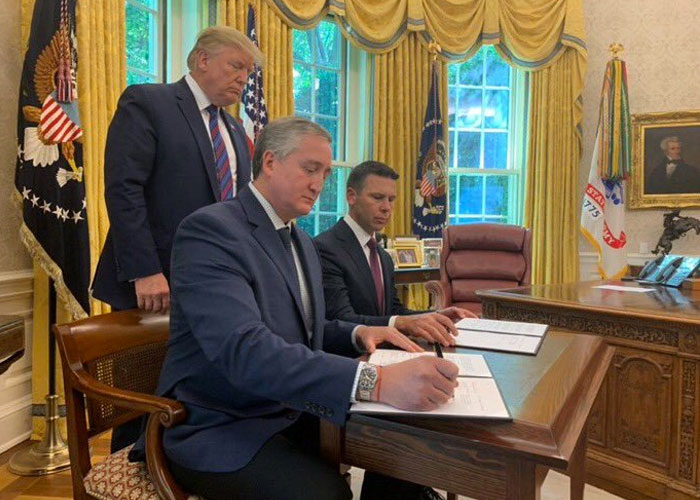 La Casa Blanca confirmó esta información a través de su cuenta oficial donde mencionan que el acuerdo se firmó en la oficina Oval entre Degenhart y Kevin McAleenan, Secretario de Seguridad Nacional de EE.UU., y con la presencia del presidente Donald Trump.