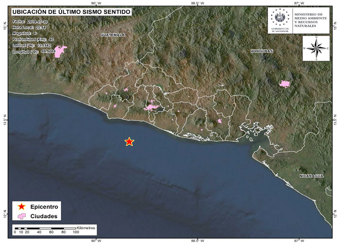 Según datos finales del Ministerio de Medio Ambiente (MARN), el sismo tuvo una magnitud de 6.0 grados, y se localizó frente a la costa de La Libertad, a 39 kilómetros al sur de playa El Sunzal. El MARN indicó que no hay amenaza de tsunami para la costa salvadoreña.