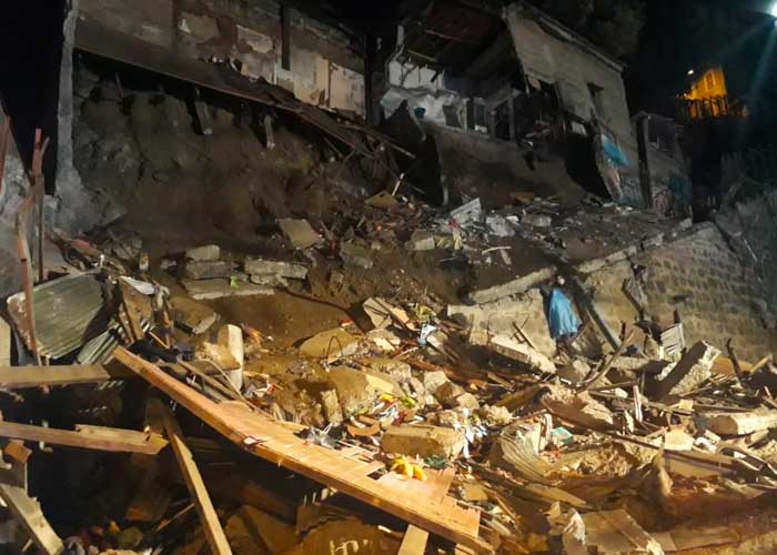 Sin lluvias ni otro elemento que alertara de lo que venía, la casa se vino súbitamente abajo, cayendo sobre una concurrida escalinata y un espacio de estacionamiento de vehículos.