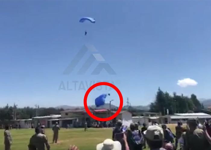 Paracaidista Augusto Vallejos de la Fuerza Aérea del Perú #FAP muere en actividad de exhibición de #Cajamarca @saldelsol @MartinVizcarraC @pcmperu pic.twitter.com/EEsN1rrYiL