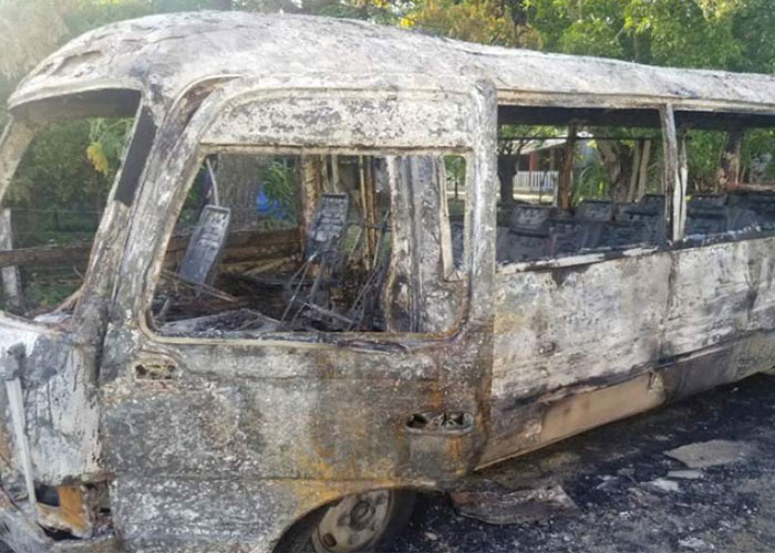 En ese sentido, la unidad fue totalmente calcinada producto de las llamas a tal grado que no se puede identificar el número de registro, el nombre de la empresa y la placa también fue quemada parcialmente.