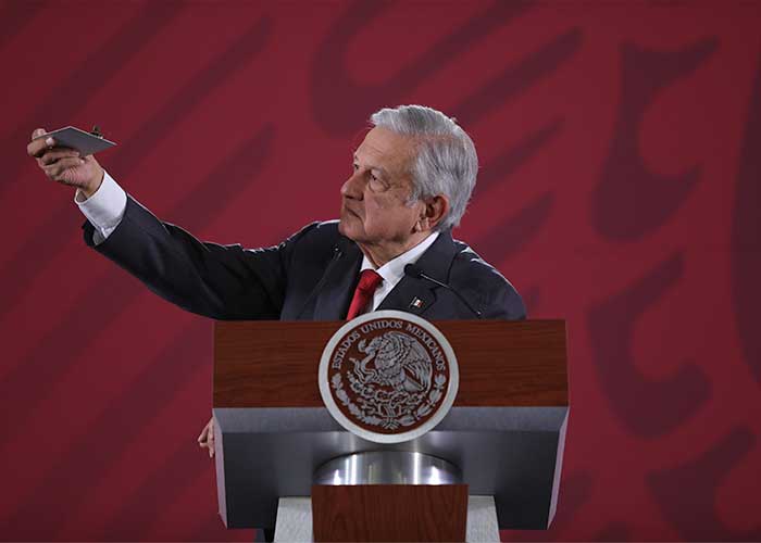 Luego de ser preguntado por el tema, el mandatario, del izquierdista Movimiento Regeneración Nacional (Morena), ordenó a uno de sus trabajadores que trajera el artefacto, consistente en una pequeña base blanca rectangular de la que brotaban cables y una diminuta cámara negra.