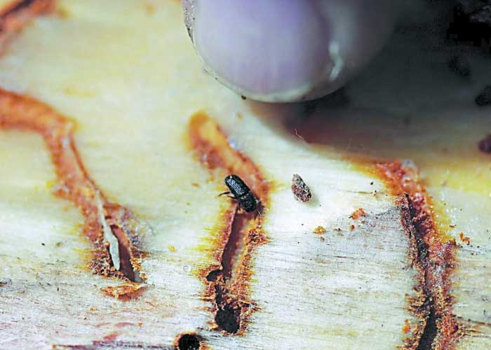 El gorgojo, un insecto de tres milímetros y cuya variedad más destructiva es la Dendroctonus frontalis, inicia sus ataques en pinos debilitados por las sequías, fuegos y altas temperaturas, según las autoridades hondureñas.