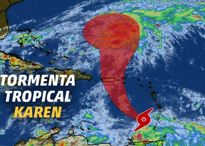 La tormenta tropical Karen avanza por el Caribe rumbo a Puerto Rico, donde se espera que impacte el martes con sus vientos máximos sostenidos de 40 millas por hora (65 km/h), informó este lunes el Centro Nacional de Huracanes (NHC).