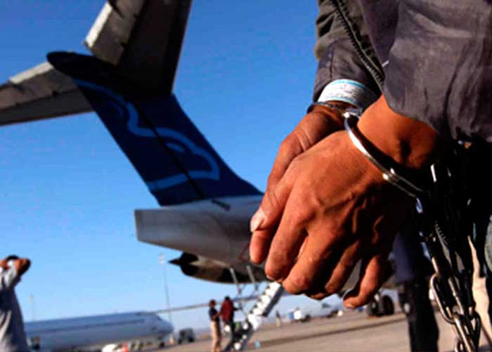 Los deportados denunciaron que en los tres vuelos que llegaron este viernes los transportaron atados con cadenas y que les soltaron pocos minutos antes de aterrizar en el aeropuerto de San Pedro Sula.
