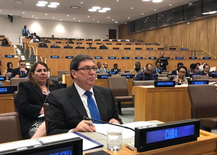 El canciller reiteró que el bloqueo económico, comercial y financiero impuesto hace casi 60 años continúa siendo el principal obstáculo para el desarrollo del país caribeño, y señaló que la ilegal Ley Helms-Burton de 1996, cuyo Título III Washington decidió activar este año, 'guía la conducta agresiva de Estados Unidos contra Cuba'.