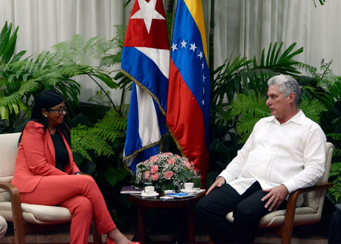 "Agradezco al presidente de los Consejos de Estado y de ministros Díaz Canel por extraordinaria reunión para abordar la cooperación bilateral e internacional! Cuba y Venezuela marchan juntas en la defensa de un mundo libre de hegemonías y respetuoso del Derecho Internacional! Viva la Patria Grande", escribió la vicepresidenta en la red social Twitter.