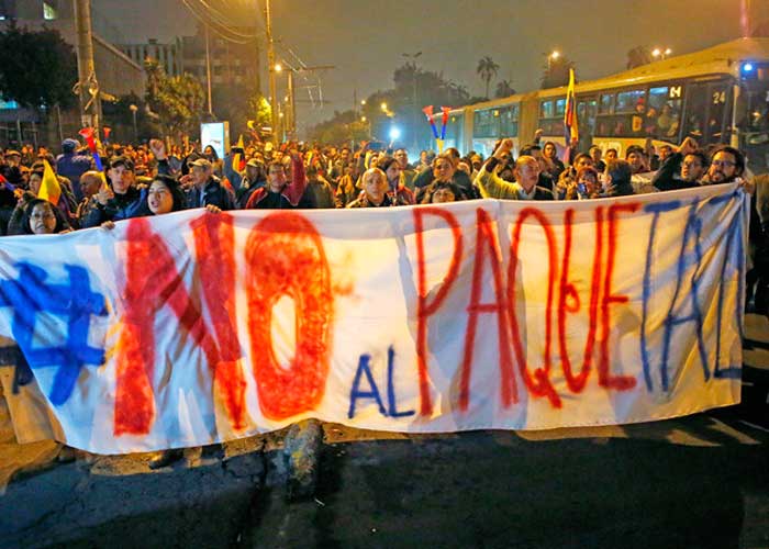 El denominado "paquetazo", impulsado por el Gobierno ecuatoriano en el marco de un acuerdo con el Fondo Monetario Internacional (FMI) prevé, entre otras cosas, eliminar el subsidio de 1.300 millones de dólares a los precios del diésel y la gasolina.