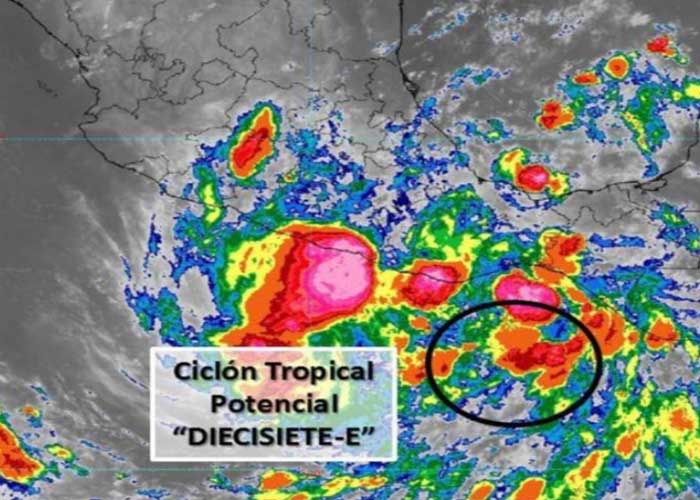 "El ciclón tropical potencial Diecisiete–E se localiza al sur de las costas de Oaxaca. Se pronostica que en las próximas horas se intensifique a depresión tropical", detalló el organismo en un boletín.