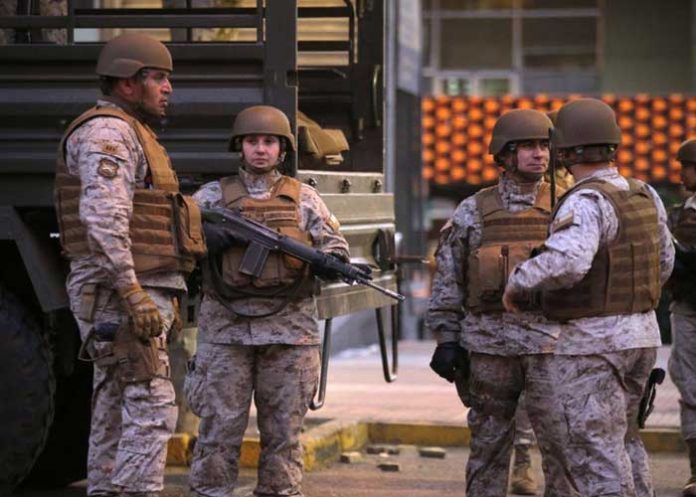 Más de 10.000 militares se desplegaron en Santiago de Chile (capital), Valparaíso y Concepción, donde se registraron enfrentamientos con los manifestantes, ómnibus incendiados, semáforos derribados y piedras en las vías producto de las fuertes protestas contra el alza del precio del pasaje del Metro.