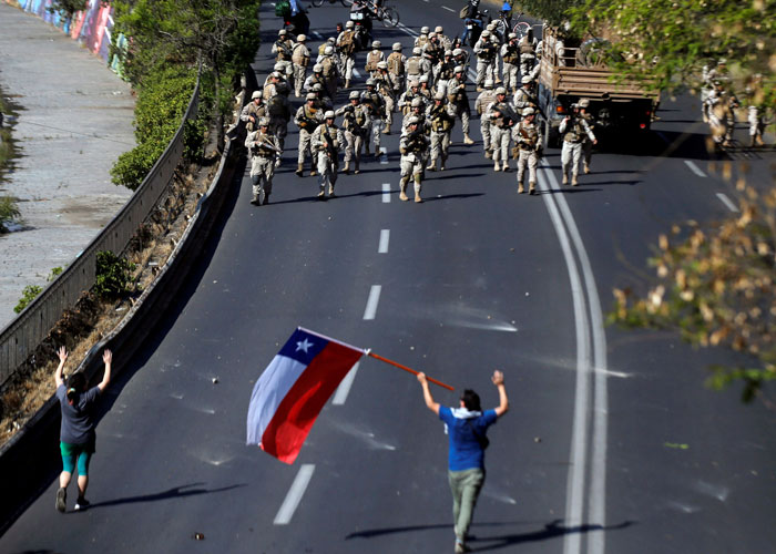 El Gobierno chileno, que dio marcha atrás al aumento en el precio del metro, afirma que el país está en “guerra” contra grupos radicales que han bloqueado calles y levantado barricadas en reclamo ahora de la renuncia del presidente Piñera.