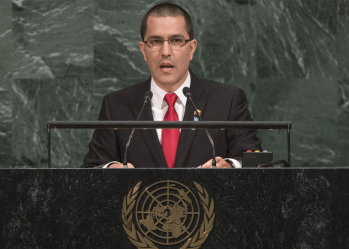 'No es por la vía de lo intolerancia política que se deben manejar las relaciones internacionales', expresó Arreaza y exhortó a todos los organismos de la Naciones Unidas a rechazar y condenar cualquier tipo de acción punitiva y unilateral contra cualquier gobierno".