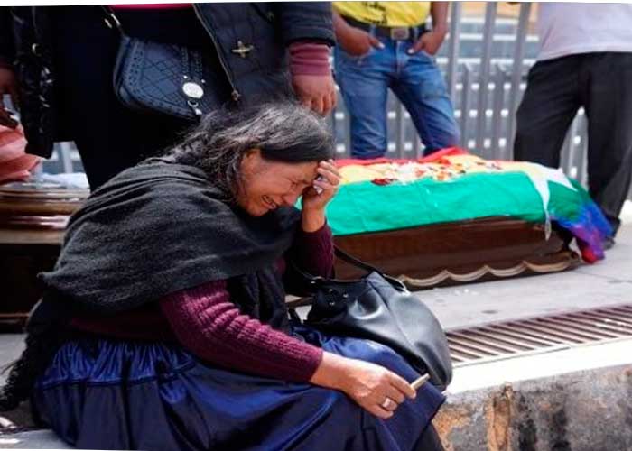 “Han matado con balas, nos han baleado los militares. Queremos respeto, hemos pedido respeto, hemos pedido que renuncie esa auto nombrada presidenta que nosotros no hemos nombrado. Por eso estábamos yendo a marchar a Cochabamba, pero no nos han dejado, nos han matado a nuestros hijos”, expresó una de las mujeres presentes en la marcha.