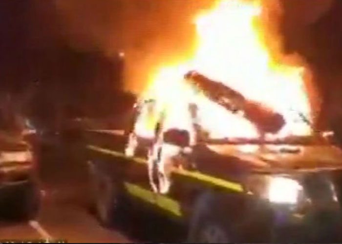 Tras la balacera, los pobladores comenzaron a tirar piedras hacia las patrullas (una de la Inspectoría y otra de la Comisaría 14), hasta prenderles fuego y quemarlas, como muestra de su descontento.