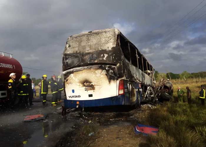 La colisión se produjo cuando un camión de la empresa AZUMAZ que transitaba por la Carretera Central a su paso por la provincia de Ciego de Ávila invadió la senda contraria e impactó contra un autobús, indica el diario Invasor.