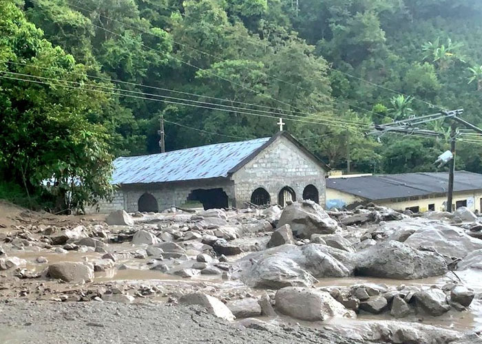 Tras las fuertes lluvias que provocaron la crecida del río, fueron arrasadas tres viviendas, mientras que la escuela y la iglesia en esa zona rural de Colombia quedaron destruidas.