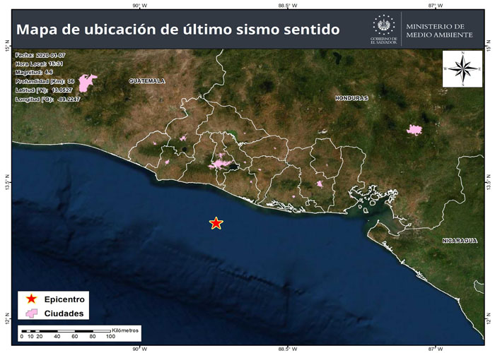 La información definitiva del Ministerio de Medio Ambiente y Recursos Naturales, Marn, situó la magnitud definitiva en 4.6, y precisó el origen frente a la costa de La Paz. A 39 km al suroeste de Playa Las Hojas.