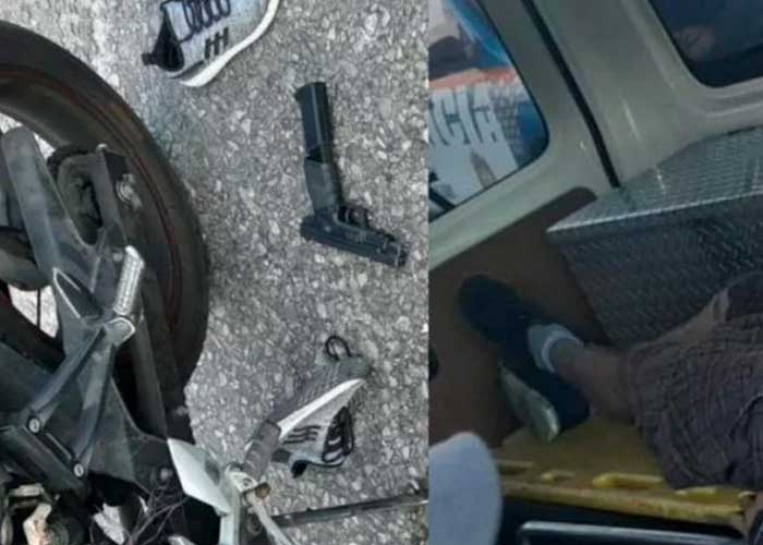 Las autoridades no han identificado aún al hombre asesinado por los supuestos criminales, a quienes se les incautó una motocicleta con reporte de robo y una pistola con un "cargador extendido para 20 disparos" de acuerdo a Castillo.