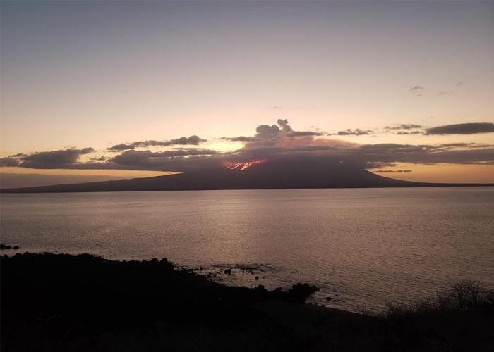 Al momento, según personal de Parque Nacional Galápagos, desde canal Bolívar (que separa la costa noroeste de la isla Isabela de la costa este de Fernandina) se observa vapor y disminución del flujo de lava.