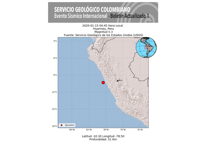 •Epicentro: 45km al SW de #Huarmey, #Peru