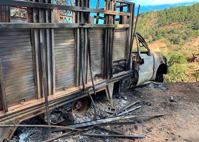 Una de las camionetas, con los cuerpos totalmente quemados se encontró sobre el camino, mientras que la otra se localizó al fondo de un barranco de más de 100 metros de profundidad.