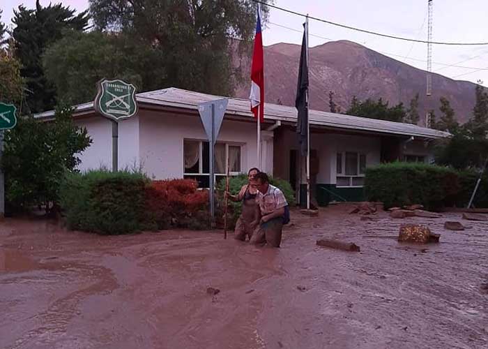 Desbordamiento del río El Tránsito, en la cordillera del Valle del Huasco, región de Atacama, Chile. Hasta el momento hay una persona fallecida y siete personas desaparecidas en la región.