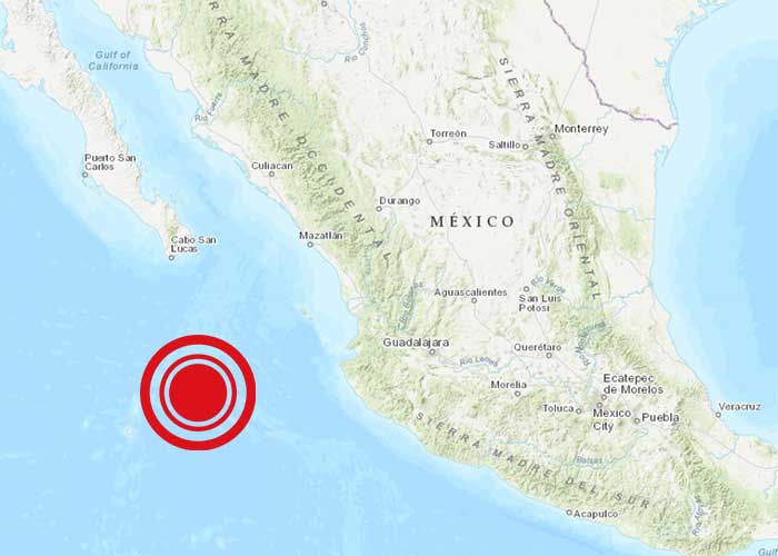 Un sismo de magnitud 5,0 se ha registrado la madrugada de este miércoles en el océano cerca de México a 327 kilómetros al sur de la ciudad Cabo San Lucas (extremo sur de la península de Baja California), informa el Servicio Sismológico Nacional de México.