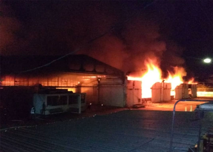 El mensaje fue acompañado por tres fotografías que muestran las instalaciones en llamas, compuestas por siete galpones y ubicadas en la zona industrial de Carabobo.