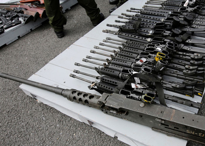 Las autoridades se incautaron armas cortas, armas largas, rifles Barrett calibre 50, fusiles con mira telescópica, además de granadas de fragmentación, cartuchos y miles de balas sueltas.