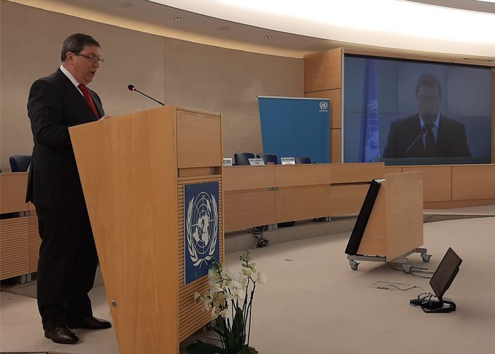 En la reunión celebrada en la sede del Consejo en Ginebra, Suiza, el canciller cubano rechazó la escalada en el componente extraterritorial del bloqueo estadounidense, con la aplicación de la Ley Helms-Burton.