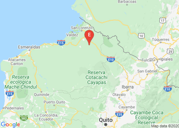 La entidad detalló que el movimiento telúrico se sintió a las 22:53 hora local (03:53 GMT del lunes) con una profundidad de 9.26 kilómetros y a 28.52 kilómetros de San Lorenzo, en la provincia de Esmeraldas.