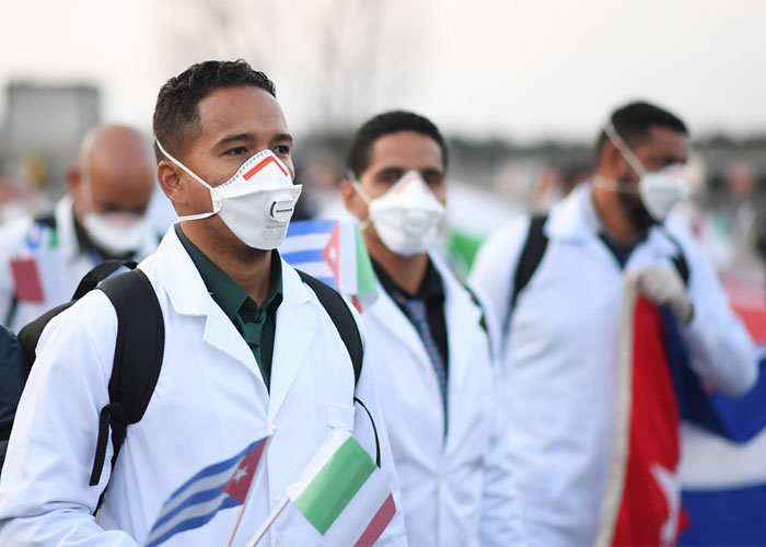 Al menos 14 brigadas del Contingente Internacional de Médicos Especializados en Situaciones de Desastres y Graves Epidemias Henry Reeve, con 593 profesionales cubanos de la salud, combaten en otras naciones el nuevo coronavirus, que se ha extendido a más de 174 países, informó Telesur.