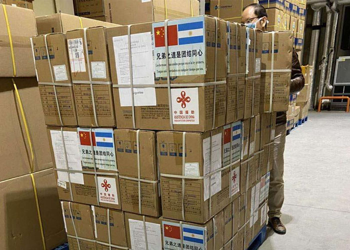 Mediante una solicitud del Ministerio de Salud de la Nación, China abrió un canal de asistencia y envió el pasado marzo 1.500 test para diagnosticar el COVID-19, 176.000 mascarillas y 53 termómetros digitales. En un segundo cargamento también envió 100.000 mascarillas, 50.000 paquetes de reactivos y 10 respiradores.