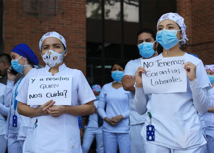Uno del profesionales médicos residente del hospital, Jaider Saurith, explicó que la situación laboral es precaria y no existen garantías para sus familiares en medio del ejercicio de la profesión. Según el especialista, casi el 100 por ciento del personal está vinculado por prestación de servicios o tercerizado, y no se están aplicando los protocolos de bioseguridad para el manejo de casos sospechosos de COVID-19.