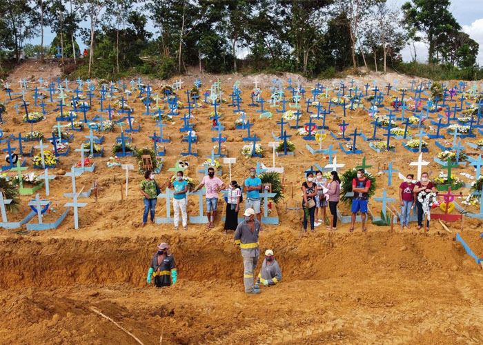 La agencia Reuters reportó este jueves que en la ciudad de Manaos, en el noreste del país, los cadáveres de muertos por coronavirus se han acumulado al punto de que el principal cementerio está sepultando los ataúdes de cinco en cinco en fosas colectivas y que pronto se quedarán sin ataúdes.