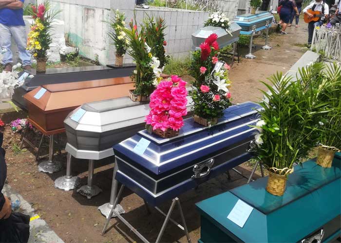 Centenares de familiares y amigos acompañaron los carros fúnebres por las principales calles del municipio en un recorrido hasta llegar al campo santo. Uno a uno fueron cargados por la entrada del cementerio donde solo se permitió la entrada de unas 20 personas para evitar la aglomeración.
