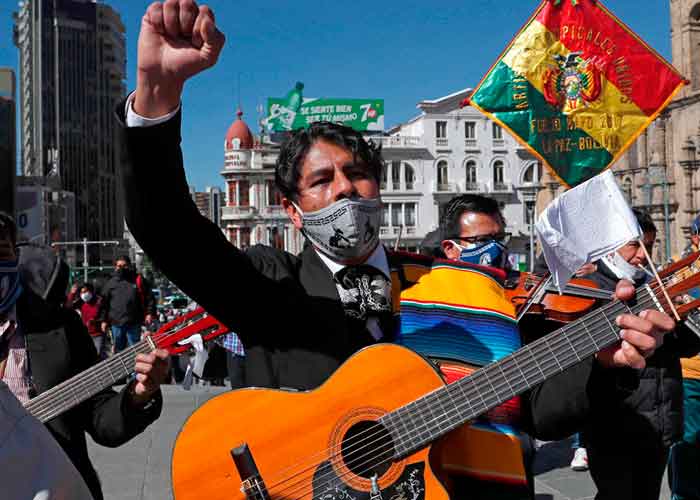 Artistas protestaron pacíficamente en puertas del disuelto @CulturasBolivia exigiendo su restitución. Fuente: #RadioLider97_ArminCopa pic.twitter.com/8XdLwYOdvz— La Razón Digital (@LaRazon_Bolivia) June 10, 2020