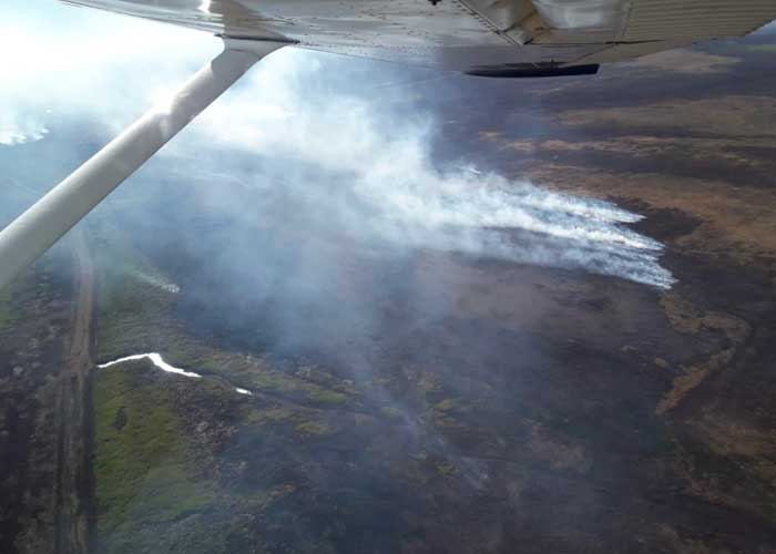 El ministro de Ambiente argentino, Juan Cabandié, sobrevoló este lunes la zona afectada por los incendios junto a la ministra de Ambiente y Cambio Climático de Santa Fe, Erika Gonnet, y el director del Servicio Nacional de Manejo del Fuego, Alberto Seufferheld.