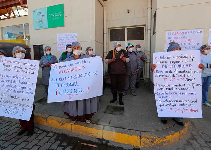Reclaman también el pago de sueldos atrasados, la necesidad de personal y la dotación alimentaria para el personal de salud. En instituciones como el Hospital del Tórax de La Paz se suspendió la atención debido al contagio con COVID-19 de una parte del personal.