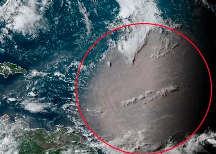 El 18 de junio, uno de los satélites de la agencia espacial estadounidense (NASA) detectó una enorme nube de polvo sahariano sobre el Océano Atlántico, empujada por los vientos del verano, que se extendió desde la costa occidental africana hasta las Antillas Menores.