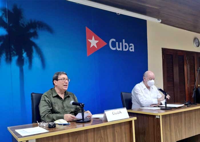 Durante su intervención, el canciller cubano, Bruno Rodríguez Parrilla, afirmó que «los efectos de la pandemia exigen de nosotros una respuesta dinámica, solidaria y coordinada».