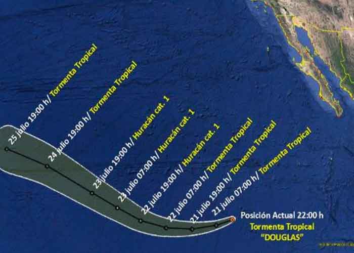 En la noche de este lunes 20 de julio se formó al suroeste de Baja California Sur la tormenta tropical Douglas, que podría ganar fuerza en los próximos días y convertirse en un huracán de categoría 1, según la previsión del Servicio Meteorológico Nacional (SMN).