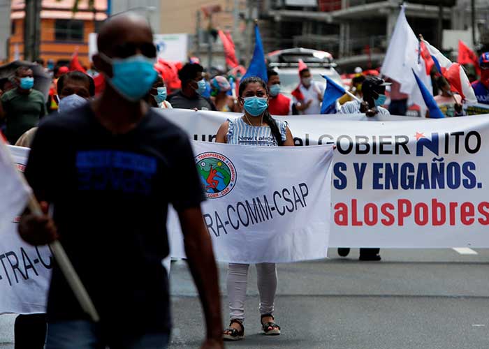 Sindicatos, grupos comunitarios, ecologistas, gremios de profesionales y estudiantes universitarios marcharon de nuevo este jueves contra los cambios al Código de Trabajo, impulsados por el presidente panameño, Laurentino Cortizo, como respuesta a la pandemia de la COVID-19.