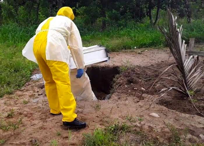 Bajo las medidas de bioseguridad, bomberos de Tocoa cumpliendo a cabalidad, enterraron el cuerpecito del bebé.