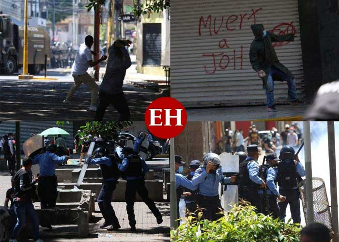 Luego de una manifestación desde el Bulevar Morazán que integraron dirigentes magisteriales, obreros y jóvenes estudiantes se produjo el enfrentamiento en la plaza central de Tegucigalpa cuando se leía un manifiesto.