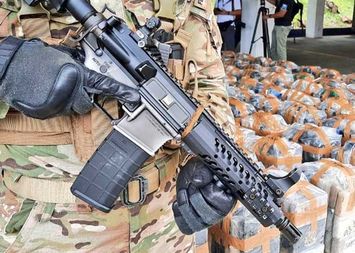Además de la droga, acopiada dentro de 50 bultos, fueron decomisados 7 proveedores para rifle de asalto, 6 radios portátiles, 2 teléfonos satelitales, un visor nocturno (monóculo), 9 antenas para radio portátil, 3 celulares, bases para cargar radios portátiles, 32 chalecos tácticos y 209 municiones de diferentes calibres.