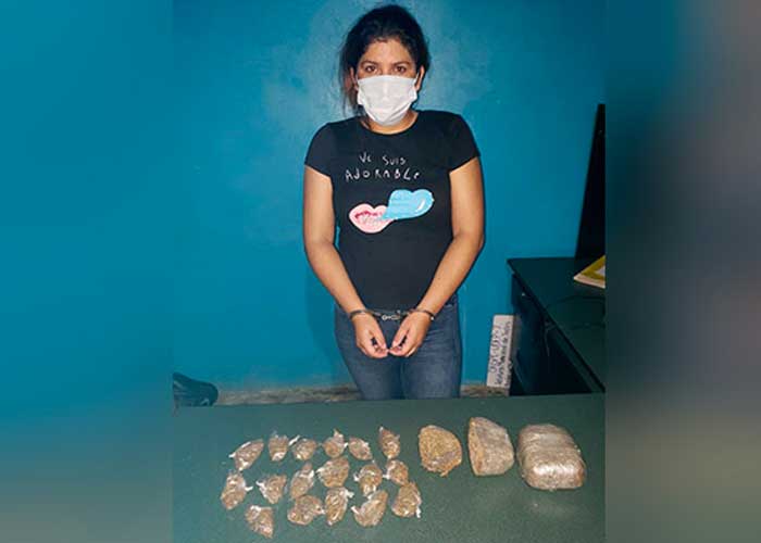 Los agentes la remitieron a la Fiscalía con un expediente investigativo por la comisión del delito flagrante de tráfico de drogas. Entre las evidencias, están tres envoltorios de cinta adhesiva transparente con supuesta marihuana con peso aproximado de dos libras, informó el medio local La Tribuna.